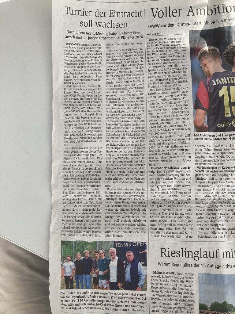Wiesbadener Kurier 31.07.2025Wiesbadener Kurier vom 05.06.2024Wiesbadener Kurier vom 01.06.2024Wiesbadener Kurier v. 20.06.2022Dotzheimer Kontakte v. 30.07.2021WK v. 12.07.2021Wiesbadener Kurier v. 01.06.2021Wiesbadener Kurier 22.07.2020Wiesbadener Kurier 17.07.2020Dotzheimer Kontakte 10.07.2020Wiesbadener Kurier 07.09.2019